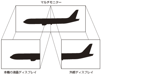 本機では、液晶ディスプレイと外部ディスプレイの組み合わせで、マルチモニターを利用できます。