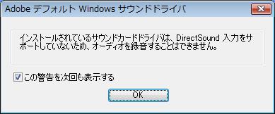 LINE IN 端子や MIC 端子に録音機器が未接続だと、Premiere からデバイスが認識されないために、このメッセージが表示されます。