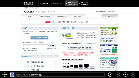 例えば、新しいWindowsユーザーインターフェースのInternet Explorerを使用中にキーボードの