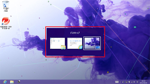 新しいWindowsユーザーインターフェース、デスクトップのすべてのWindowsアプリを、この操作で切り替えて表示することができるので、覚えておくと便利です。