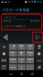 ②確認のため、同じパスワードを「パスワードの再入力」欄へ入力し、[→]をタップしてください。