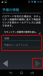 パスワードを忘れた場合の質問・回答と、「予備のメールアドレス」(連絡先のメールアドレス)を設定してください。