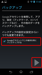 Googleアカウントを使用したバックアップに関する設定を行ってください。