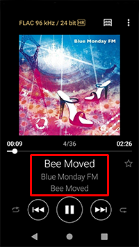 再生画面の曲名をタップする