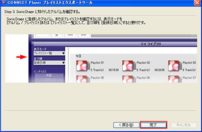 現在ご使用いただいている「CONNECT Player」から「SonicStage CP」へ移行するには「プレイリストエクスポートツール」をお使いください。
