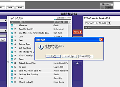 「はい」を選択すると、マイライブラリに登録されている楽曲が自動転送されます。