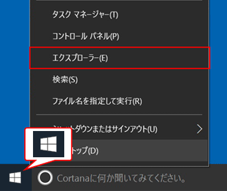 - デスクトップ画面の左下隅を右クリックして、表示されたメニューの[エクスプローラー]をクリックしてください。