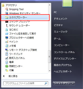 - [アクセサリ]-[エクスプローラー]をクリックしてください。