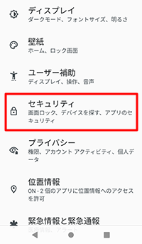 [設定]−[セキュリティ]を選択し、[画面ロック]をタップする