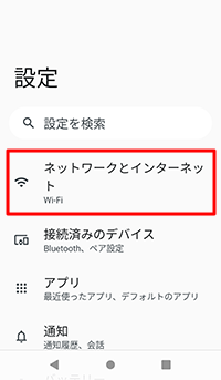 [設定]−[ネットワークとインターネット]−[Wi-Fi]をタップする