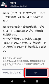 [mora]をタップする初めてmoraアプリをお使いになる場合は、moraアプリ更新ダウンロードが必要です。