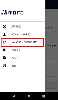 - moraアプリの画面左上の をタップし、[moraをホーム画面に追加]を選択する