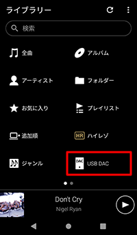 W.ミュージック]を起動する - ライブラリー画面の[USB DAC]をタップする