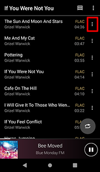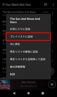 (コンテキストメニュー)をタップし、[プレイリストに追加]から作成したプレイリスト名を選択します。