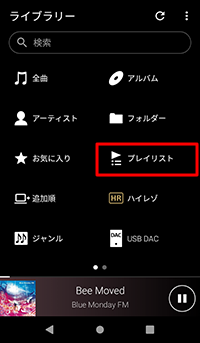 [W.ミュージック]のライブラリートップで[プレイリスト]−