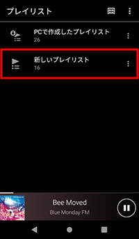 (オプション)−[新規プレイリスト作成]をタップするプレイリストの名前を入力し、[OK]をタップする