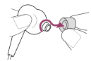 - ヘッドホンを押さえた状態で、イヤーピースをねじりながら引き抜く。