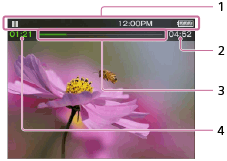 再生状態、現在時刻、電池残量などが表示されます。