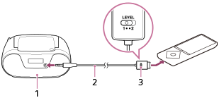 ウォークマンとオーディオ機器を、録音用ケーブルWMC-NWR1(別売)を使って接続すると、パソコンを介さずにウォークマンで直接ラジカセなどから曲を録音できます。