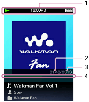 再生状態、現在時刻、電池残量などが表示されます。