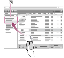 )をクリックし、ウォークマンに転送したいコンテンツを選択する。アルバムやアーティストを取り込みたい場合は