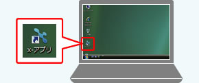 デスクトップに「x-アプリ」のアイコンがある場合は、アイコンをダブルクリックして起動することもできます。