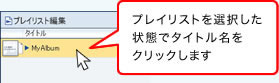 プレイリストのタイトルを変更したい場合は、変更したいプレイリストを選び、右側の「プレイリスト編集」画面でプレイリストのタイトル名をクリックしてください。