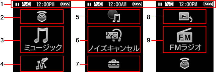“ウォークマン”では、各機能の入り口がホームメニューになります。