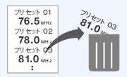 最大30局まで登録できるプリセットから不要な放送局を解除することが出来ます。