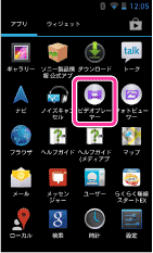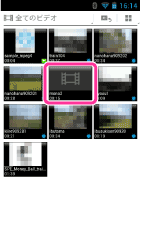 ホーム画面で - (ビデオプレーヤー)をタップしてください。 ビデオの一覧画面が表示されます。 一覧表示は、(メニュー)ボタンから表示形式を切り換えることができます。