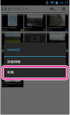 一覧に表示されたものから削除したいビデオのサムネイルを選択して長押ししてください。 ビデオのサブメニュー画面が表示されます。