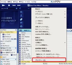 楽曲を「右クリック」して表示されるメニューから[プロパティー]を選んでも、楽曲のプロパティを表示できます。