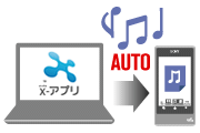 「x-アプリ」に自動転送の設定をすることで、お使いのパソコン上にある楽曲ファイルを自動的に“ウォークマン”へ転送することができるようになります。