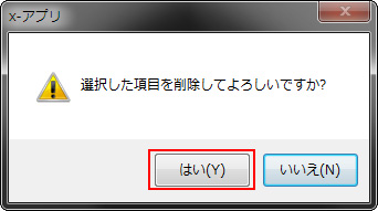 「選択した項目を削除してよろしいですか?」というダイアログが表示されたら、[はい]をクリックしてください。