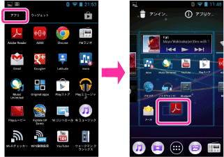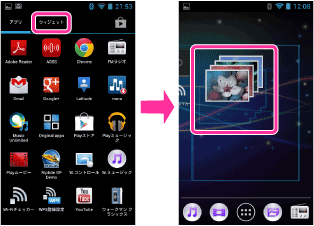 ウィジェットとは、ホーム画面上で操作できる小型化されたアプリケーションです。アナログ時計やw.ミュージックなどをホーム画面に配置できます。利用するには、アプリケーションがウィジェットに対応している必要があります。