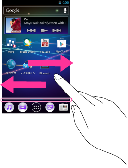 ホーム画面は5画面あります。左右にフリックして、ホーム画面を切り換えることができます。