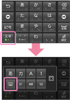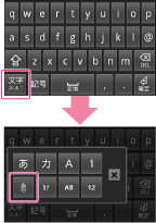 長押し: 文字種およびキーボード切り換えウィンドウを表示します。