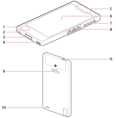 電源を入れるとき、または画面をオン/オフするときは短く押します。電源を切るときは長押しします。電源ボタンを8秒押し続けると“ウォークマン”をリセットできます。