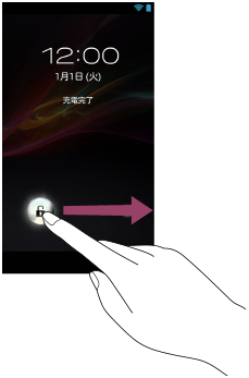 画面(タッチパネル)上に表示されるアイコン、項目、操作ボタンなどを指で軽くタッチ(タップ)して、“ウォークマン”を操作します。