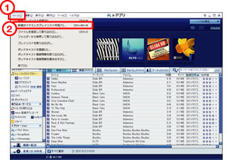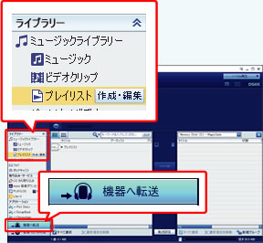 ]ボタンをクリックして表示される x-アプリ転送画面で、[プレイリスト]ボタンをクリックして転送してください。