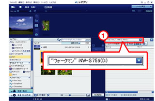 転送画面の上部で転送先の“ウォークマン”の機種名を選択します。
