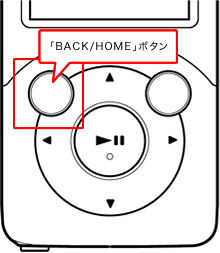 “ウォークマン”本体の「BACK/HOME」ボタンを長押し(数秒間押し続ける)すると、“ウォークマン”の画面に[ホームメニュー]が表示されます。