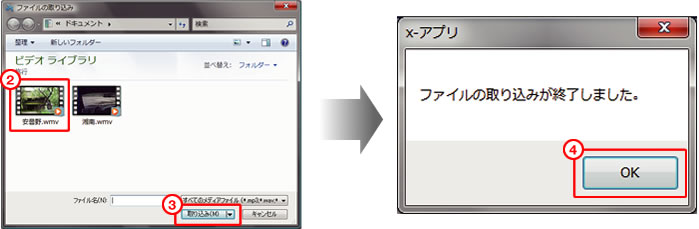 これで、「x-アプリ」へのビデオの取り込みが完了しました。