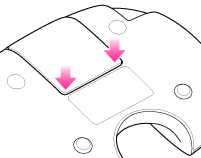 突起左角上の取り付け穴の方も合わせて、スタンドを上から「パチン」と音がするまで奥に押し込む。