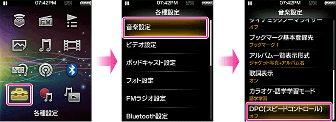 聞き取りづらい箇所等をゆっくりと再生することで、正しい発音を理解できます。また速度を上げることも可能です。 DPC機能を使うと、再生速度を変更しても自然な音程で再生されます。