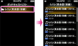 これで、”ウォークマン”に転送したポッドキャストを視聴できます。