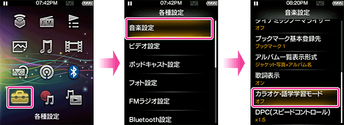 | オフ | カラオケ・語学学習機能を使いません。 |