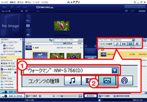 画面右側のプルダウンメニューをクリックし、転送先の"ウォークマン"を選択してください。
