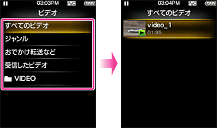 | 受信したビデオ | 他のBluetooth機器から“ウォークマン”に送信された動画ファイルを表示します。 |