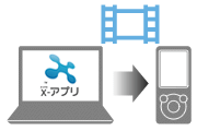 お手持ちのパソコン上にあるビデオファイル・写真ファイルを、「x-アプリ」で“ウォークマン”へ転送することができます。
